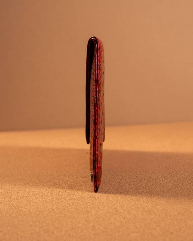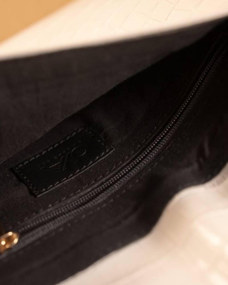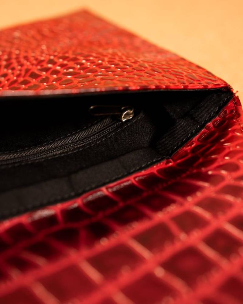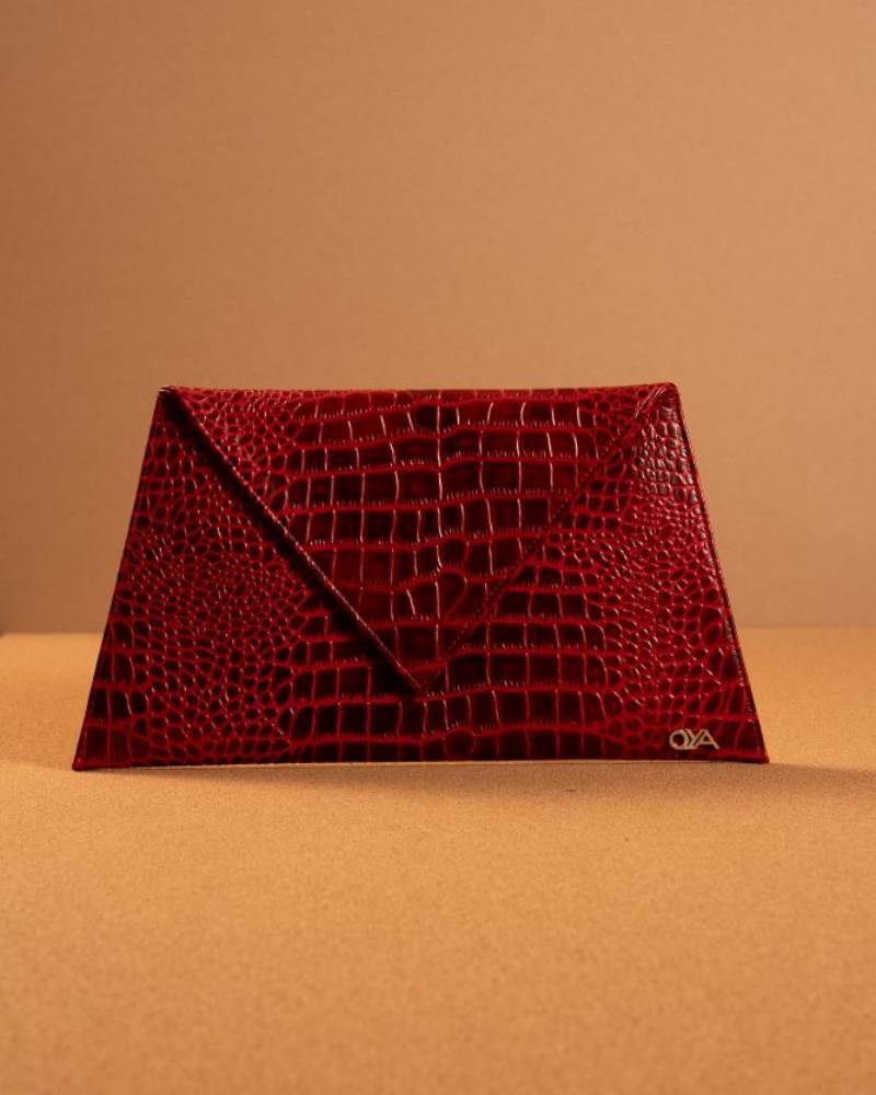 The Envelope Clutch is a sleek and stylish accessory, crafted with a rich, textured faux crocodile leather that adds a touch of sophistication to any outfit. Its triangular flap closure gives it an elegant, geometric look, while the clean lines and subtle embossing elevate its minimalist design. The warm, caramel color enhances its versatile appeal, making it the perfect addition for both day and evening events. The clutch is finished with a small, elegant logo at the corner, ensuring a polished and high-end feel. Ideal for holding essentials, the Envelope Clutch is both chic and function.